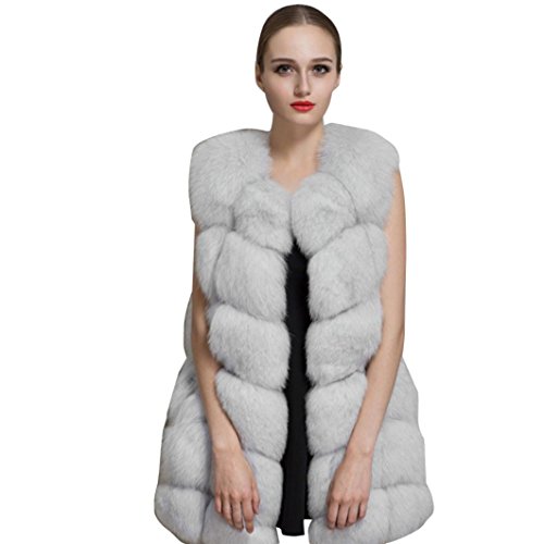 Creazy Women Warm Outwear Slim Vest Faux Fox Fur Winter Waistcoat Jacket Coat (XL, Grey)
