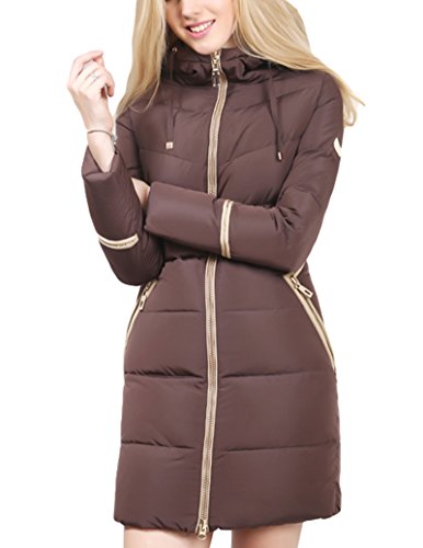 Fashionmore Women's Slim Fit Long Down Jacket Coat with Hood Brown L