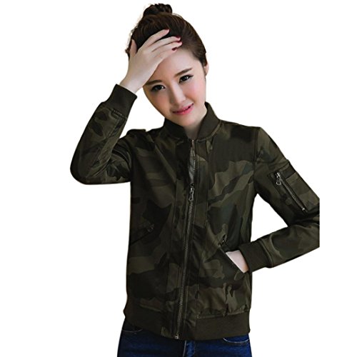 Mchoice Women Autumn Winter Zipper Camouflage Printed Bomber Jacket (XL, Army Green)