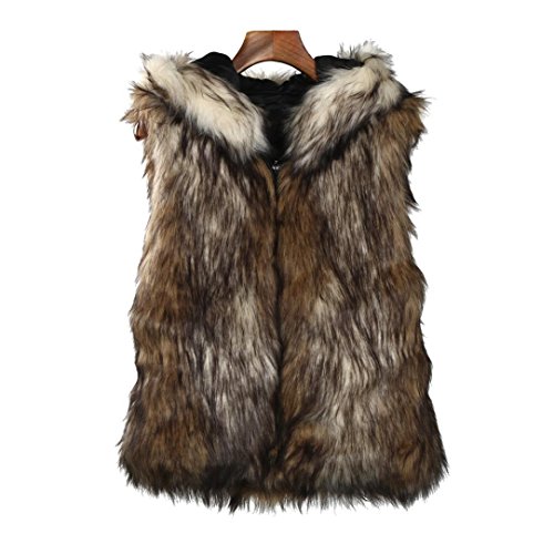 Creazy Women Faux Fur Vest Jacket Sleeveless Winter Warm Coat Hooded Waistcoat Gilet (XXXL)