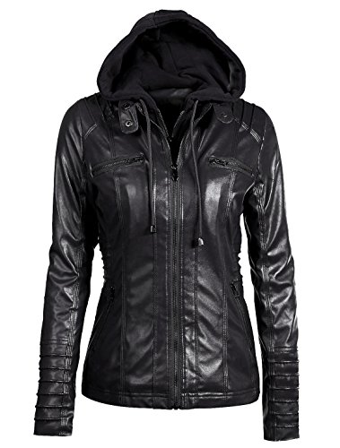 Kearia Womens Hooded Slim Fit Faux Leather Moto Zip Up Jackets Coat Black XLarge is one of the Womens Winter Jackets for Sale in the marketplace. This First-Rate product brings to you to meet your demand.