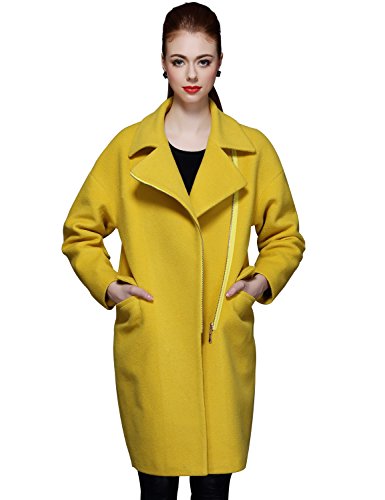 Maxchic Women's Norch Collar Off-center Zip Front Wool-Blend Coat D14122Y14M,Yellow,X-Large