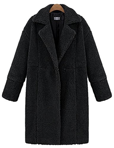 Kearia Women Warm Lapel Soft Faux Fur Jacket Loose Plush Woolen Long Coat Outwear Black XLarge
